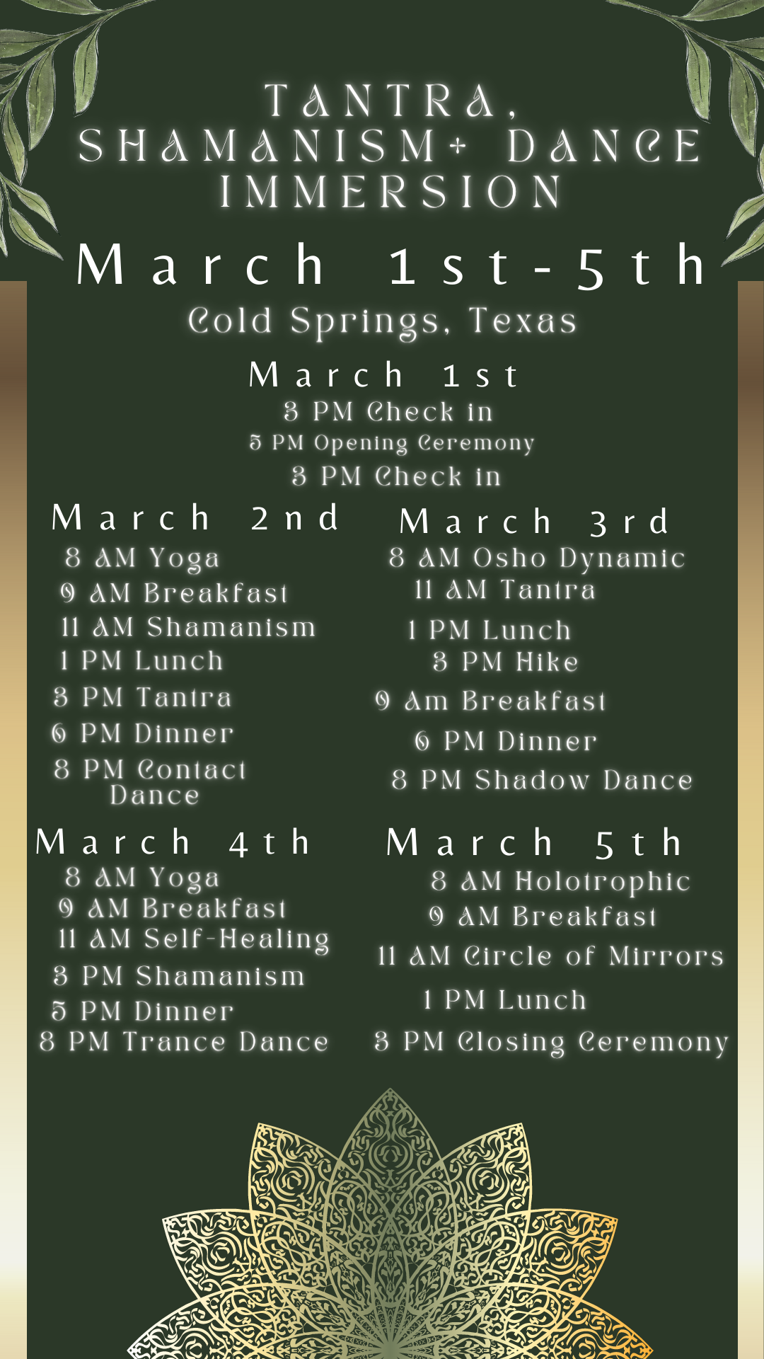 Join us on a full embodied immersion to step deeper into who you are as you alchemize into your soul purpose through ancient practices such as Tantra, Shamanism, & Sacred Dance.